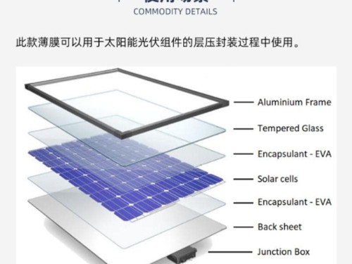 光伏電池封裝膠膜(EVA)一種熱固性有粘性的膠膜,用于放在夾膠玻璃中間(EVA是Ethylene乙烯 Vinyl乙烯基 Acetate醋酸鹽的簡(jiǎn)稱(chēng))。